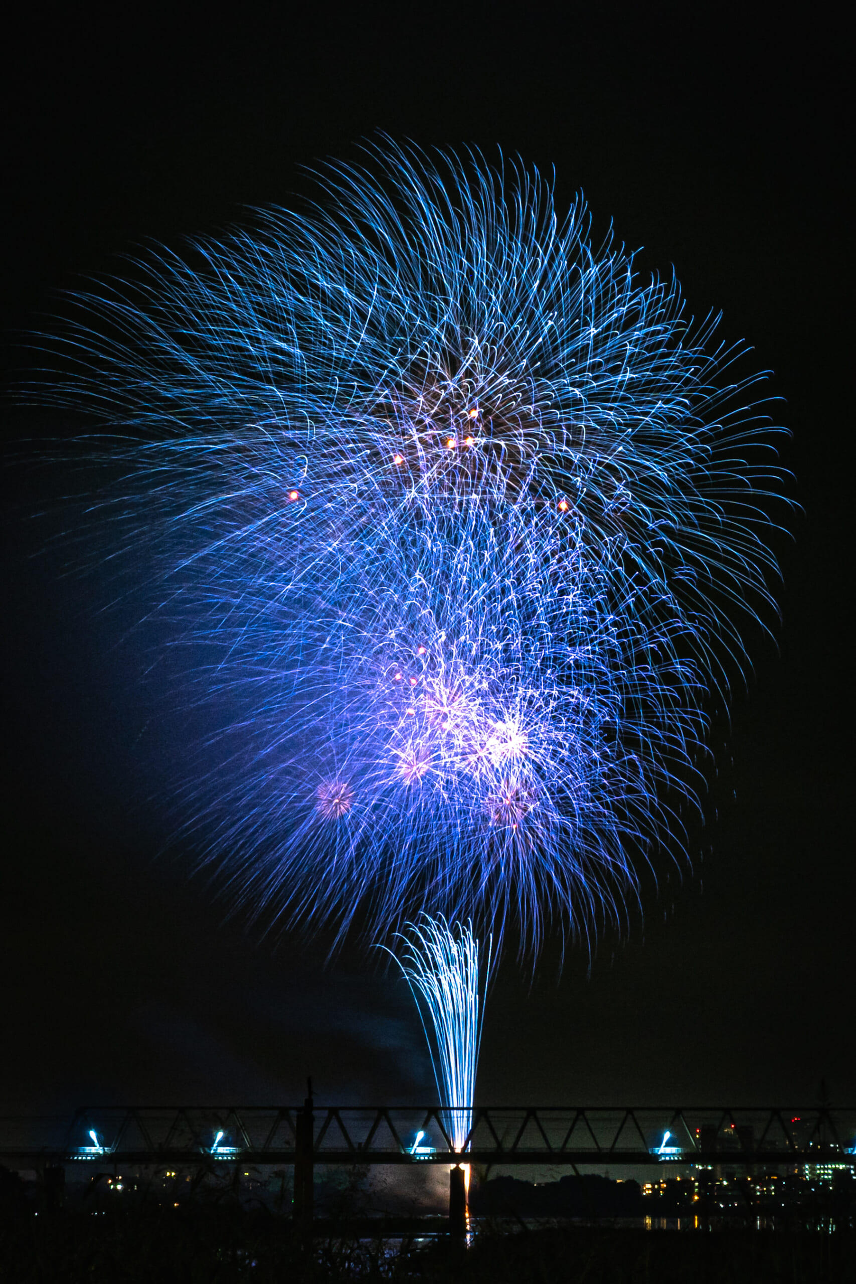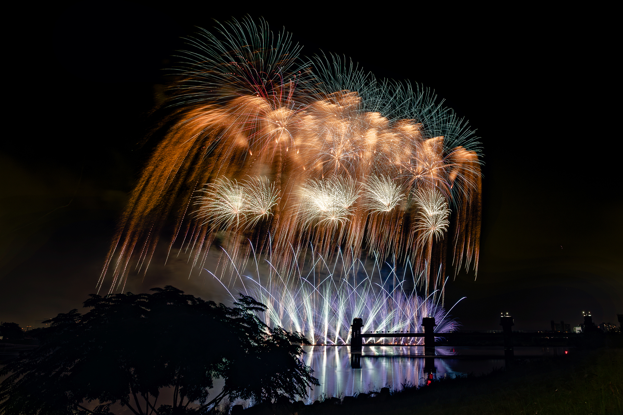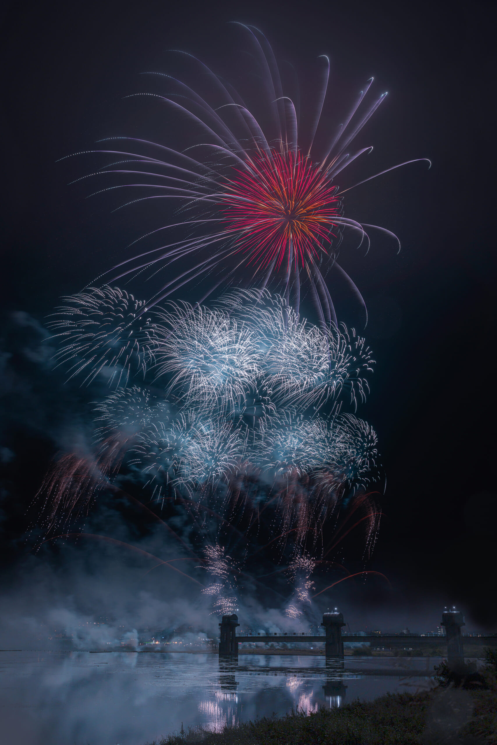 「水門の上に咲く秋花火」