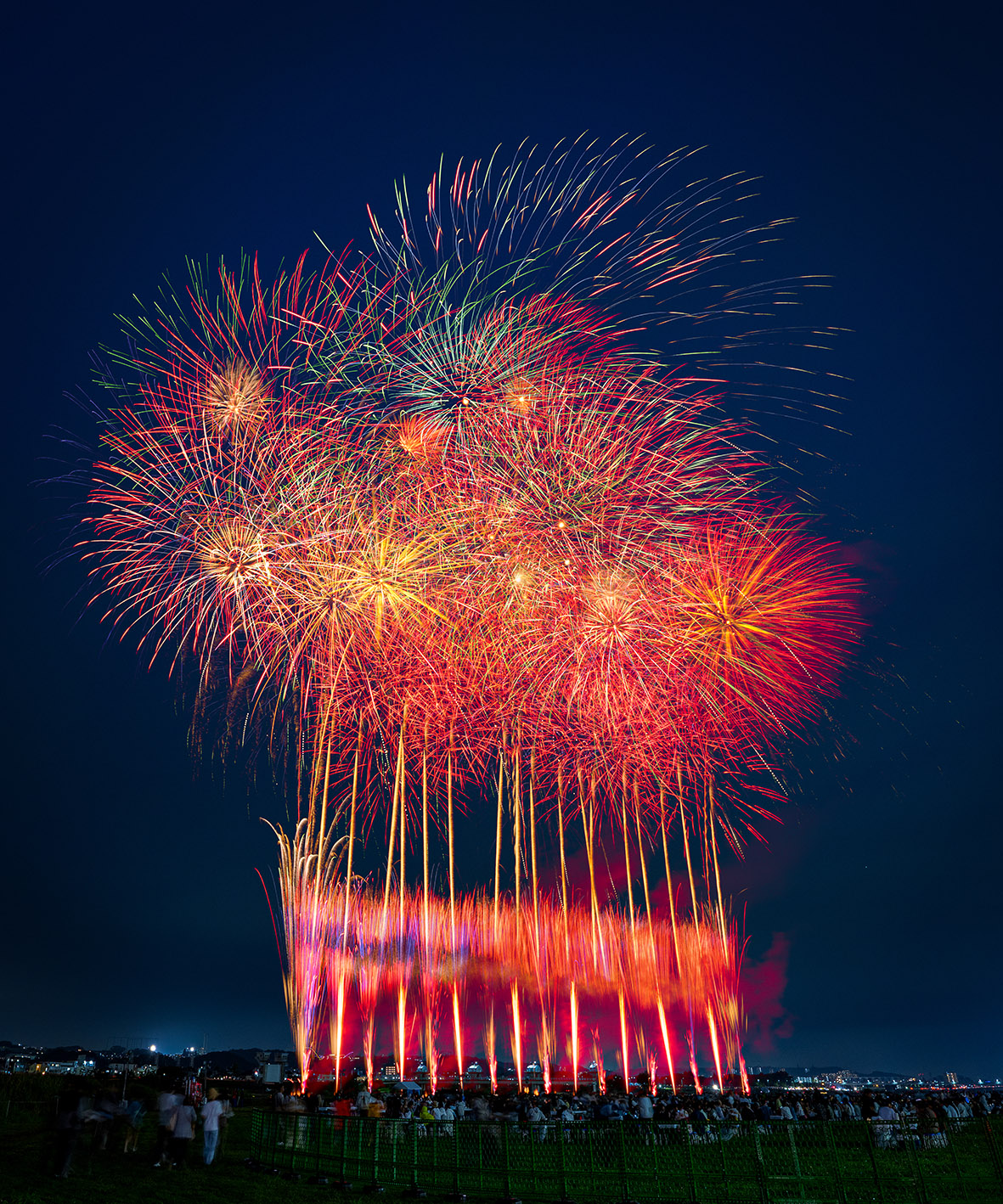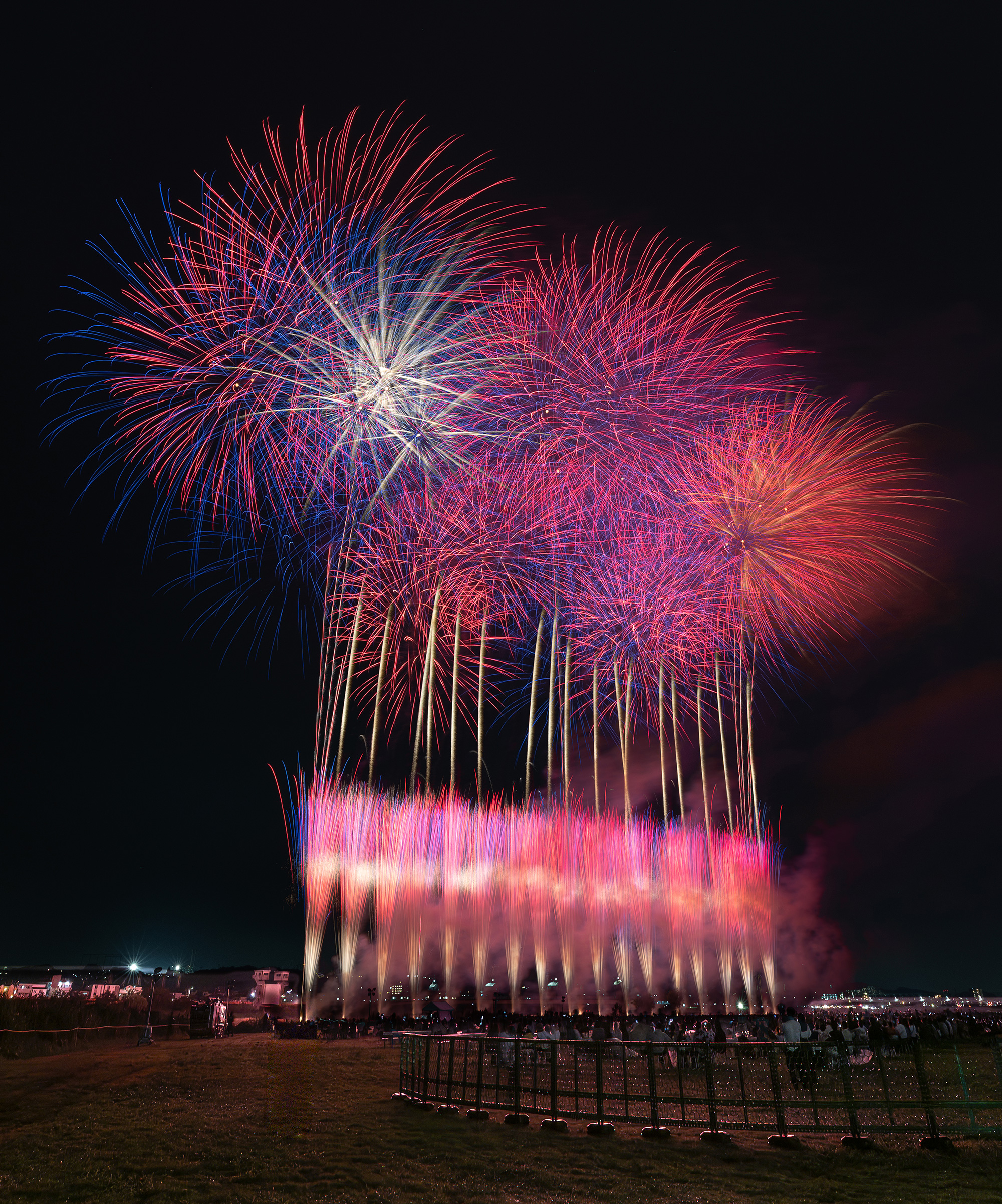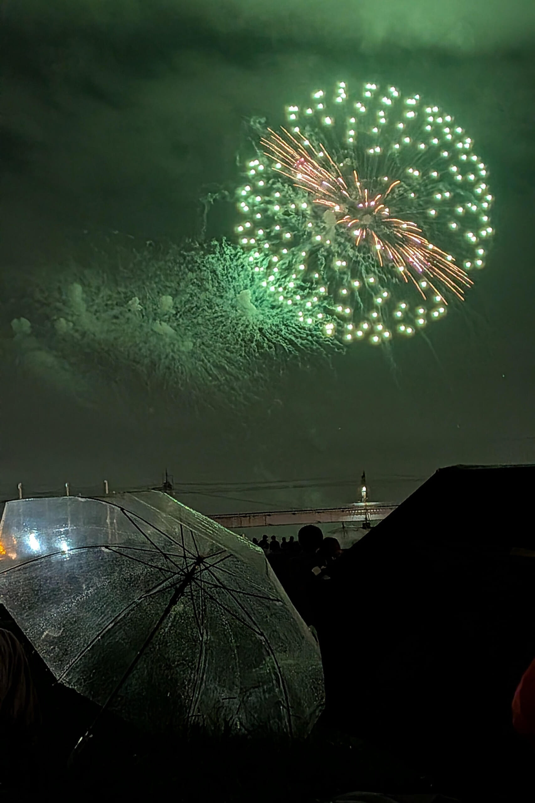 「水門の上に咲く秋花火」